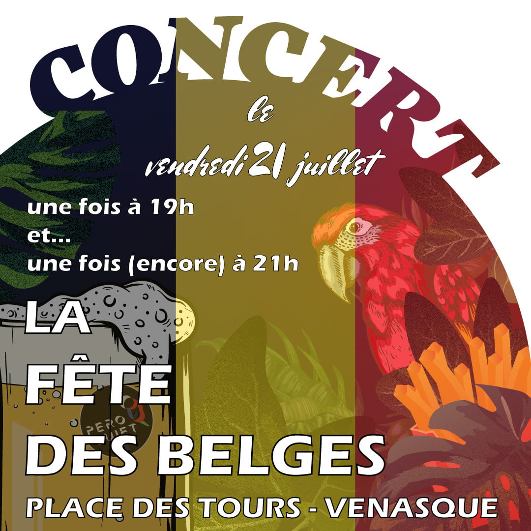 Une fête ça se célèbre toujours et encore plus avec nos amis belges ! Retrouvez nous en concert pour animer cette soirée sur la place des tours à Venasque à 19h. L’occasion de manger de bonnes moules accompagnées d’aussi bonnes frites et bien sûr d’une belle blonde. Et, pour prolonger le plaisir nous vous accompagnerons avec un deuxième concert pour prolonger le plaisir à 21h !