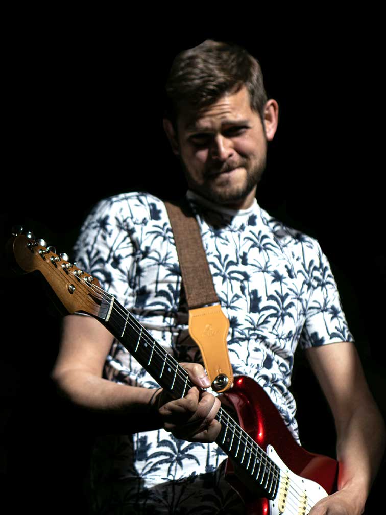 Jamais avare à l’heure de l’aperoquiet, Valentin n’en est pas moins un guitariste de talent aux influences blues. D’ailleurs, au plus profond de lui il n’aspire qu’à rendre le monde Mayer, un peu comme John…